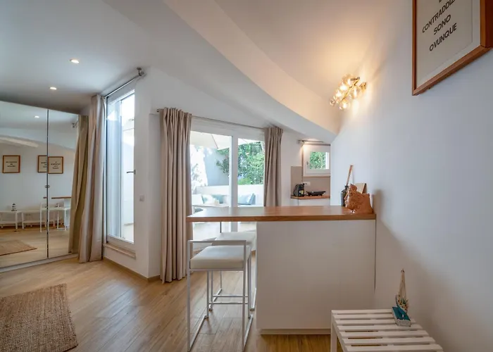 La Suite Sea View, Parking And Private Beach van 42 m^2 is op circa 5 minuten lopen van Piazza Lauro gelegen. Het appartement met een terras is relatief dicht bij I Giardini di Cataldo gelegen.